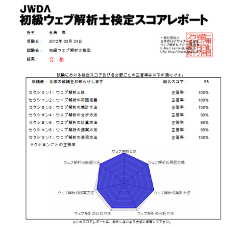 試験は、パソコンを使ってするので、時間になった途端、画面が切り替わり「95点 合格」の文字が。