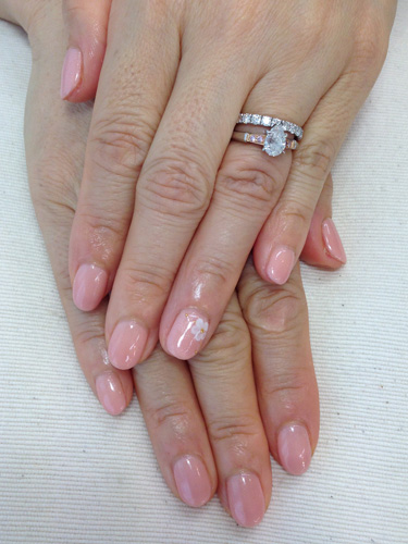 今回は、左手の薬指に小さなスリーディーの花を一つつけてもらいました。