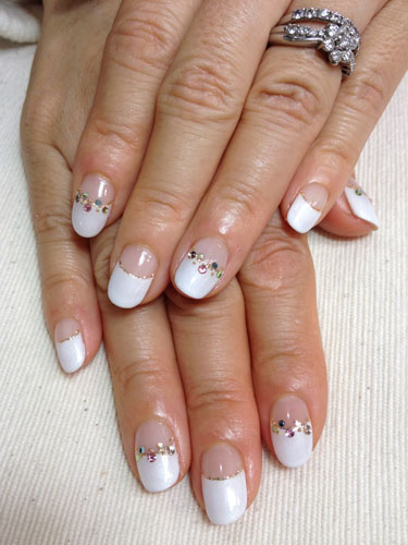 最近、フレンチ→ベージュの一色塗り→上品なラメ…を繰り返している、私のネイル。 今回、「フレンチにしてください」とリクエストしたら、「たまには逆フレンチにしてみます?」と言われたので、「じゃあそれで…」とお任せしました。 パールの入った白いネイルは、艶っぽくていい感じ… 右手の親指、人差し指、薬指、左手の人差し指、薬指につけてもらったストーンは、5色を組み合わせてもらったのですが、カラフルで可愛いです。 手にパラフィンパックもしてもらい、大満足でした♪