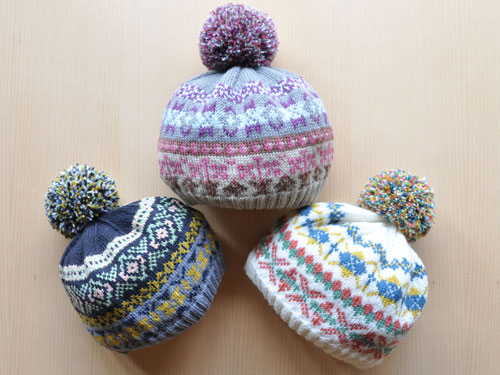 お正月の間に、3枚のフェアアイルの帽子を編みました。 この写真のうち、2点はその写真です。 この写真は、商品紹介用に…ってことで、カメラマンに撮影してもらったものです。 今年も、編み物漬け?状態です。