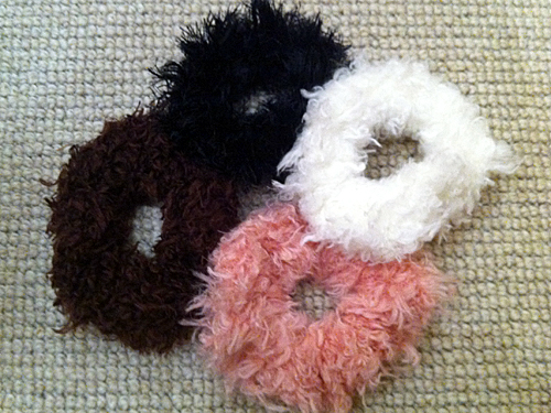 こちらは、昨年も編んだファーのシュシュです。 1個が10分くらいで編めちゃうので、あっという間にできちゃいます…