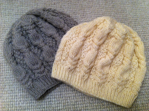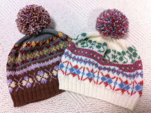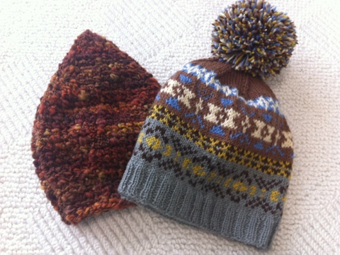 最近、なかなか編めなかった帽子… やっとのことで、仕上げました。 編み込み帽子と、混ざり糸のベレー帽。 編み始めると止まらないんだけど、バタバタの毎日が続くと、休憩しちゃうのよね。 お正月休みも、ひたすら編むわ!