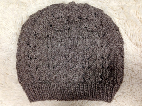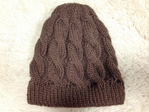 縄編みの帽子です。 太めの糸で縄編みを編みました!