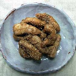 180℃の油で、1をからりと揚げ、揚げるなり、2の漬け汁に入れる。