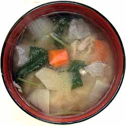 - 味噌をとき、三つ葉をいれて火をとめる。