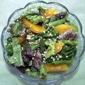 カロチン(ビタミンA)の多い野菜のサラダです。ごまは、ビタミンEが豊富だし、元気が出るかなっ?