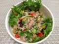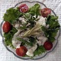 暑くなると、あっさりツルツルという食事になりがち…栄養のバランスを考えて、サラダ風の冷麦です…(実は、私はそうめんの細さが苦手…)
