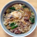 みーちゃんが大好きなカツ丼… 卵が半熟状態で火を止めましょう。